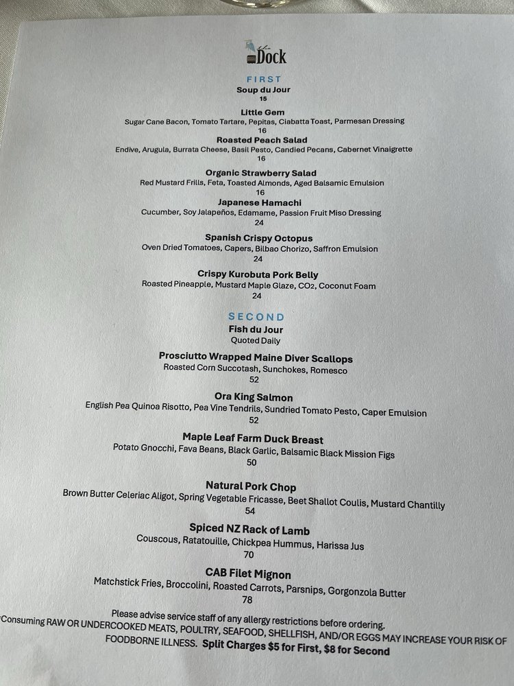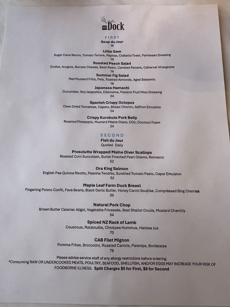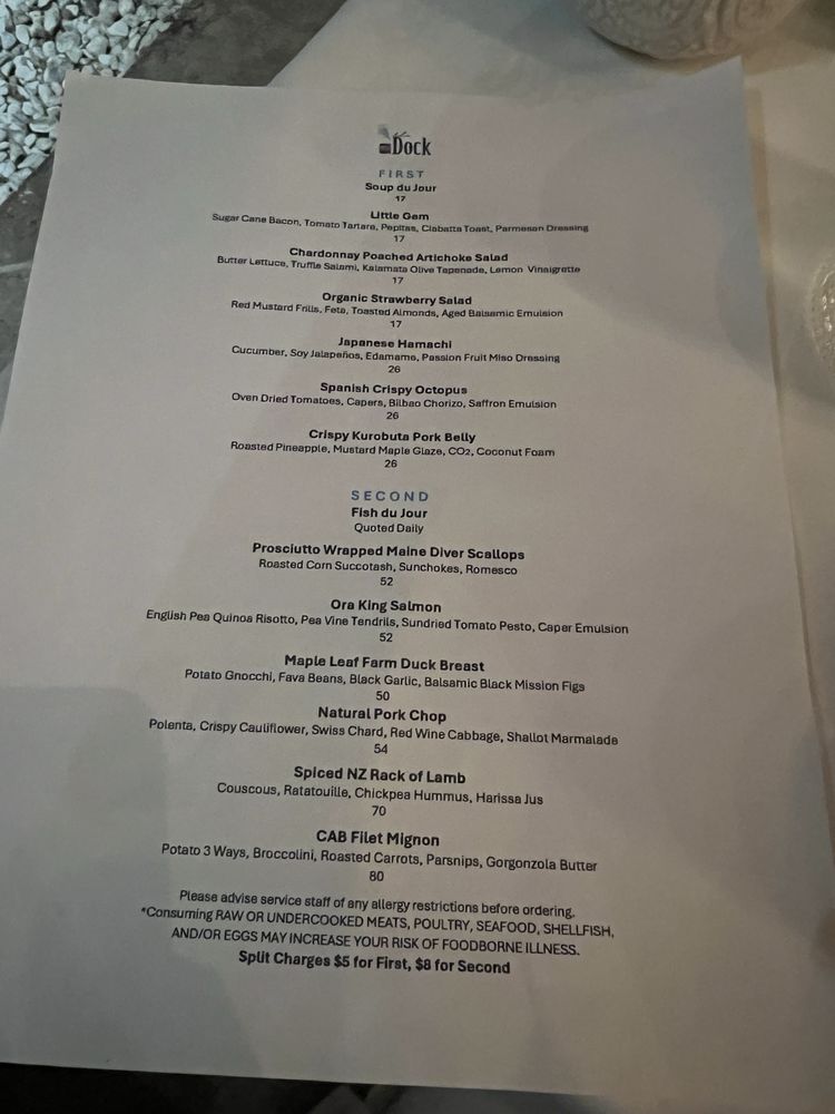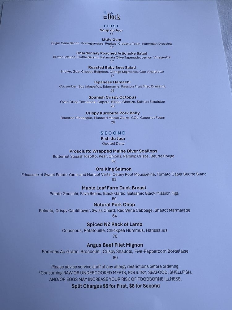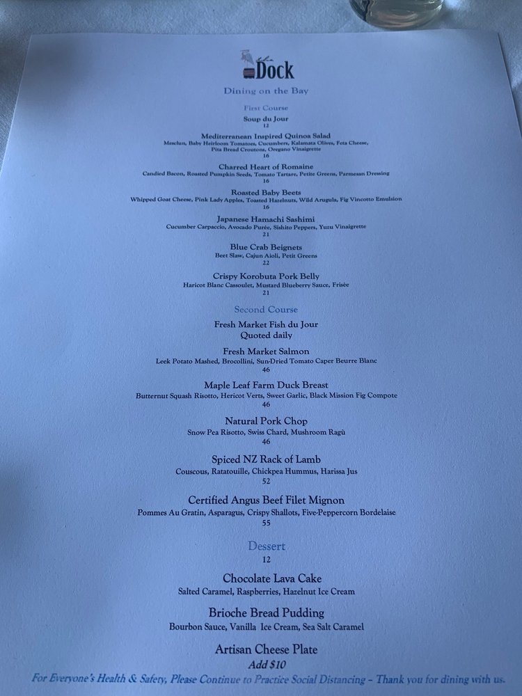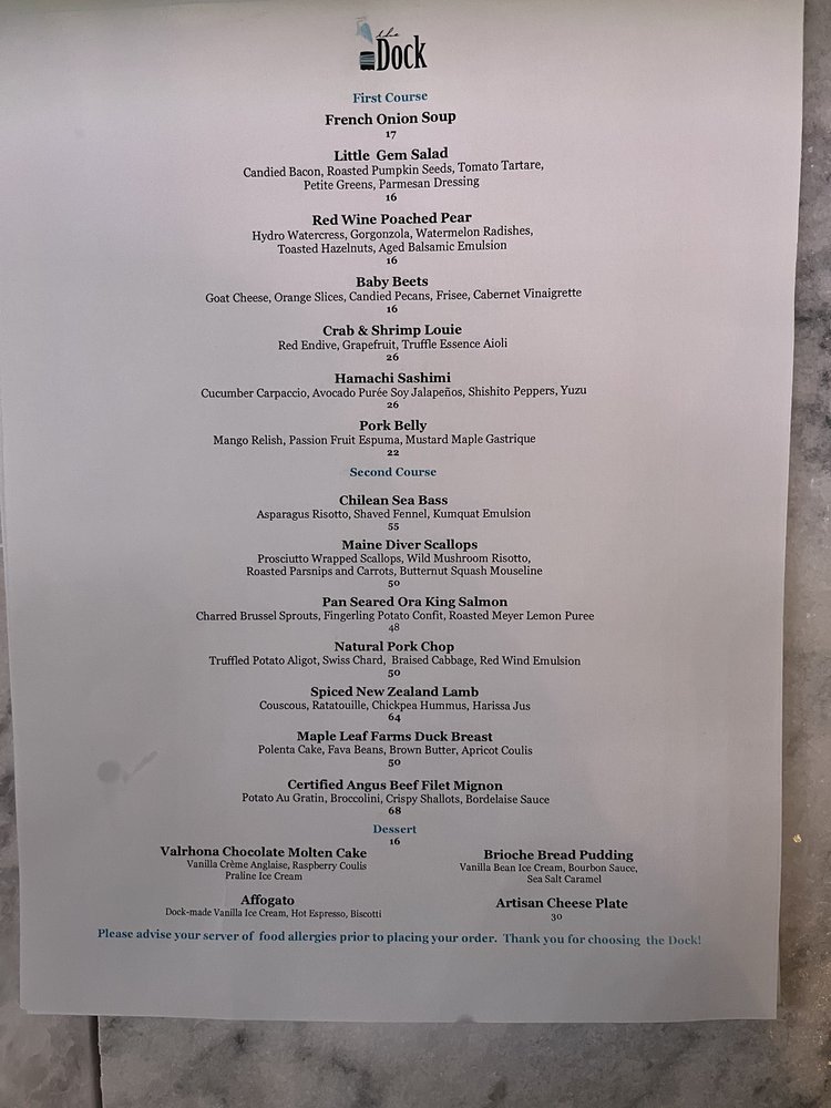 Desserts, such as the Valrhona Chocolate Molten Cake, evoke pure bliss, perfect for ending your meal on a sweet note. Consistent rave reviews highlight the restaurant's exceptional service and atmospheric charm, making The Dock a must-visit culinary destination.