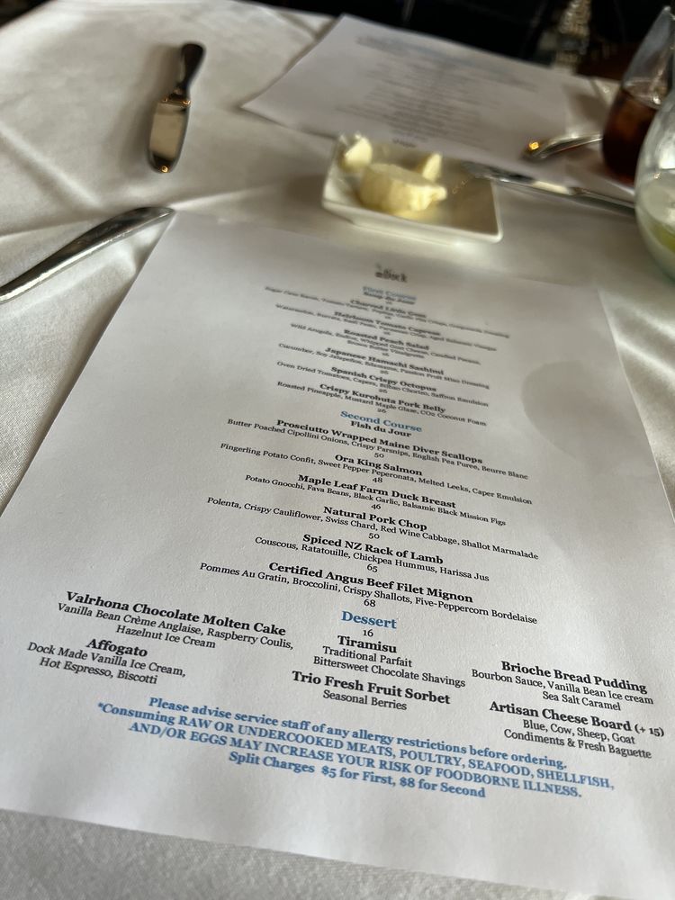 The menu bursts with vibrant first courses like the Little Gem Salad and Ahi Sashimi, showcasing meticulous preparation and bold flavors. For mains, the alluring Maine Diver Scallops served with a rich quinoa risotto stand out as a crowd favorite, while the Certified Angus Beef Filet Mignon offers a lavish indulgence.